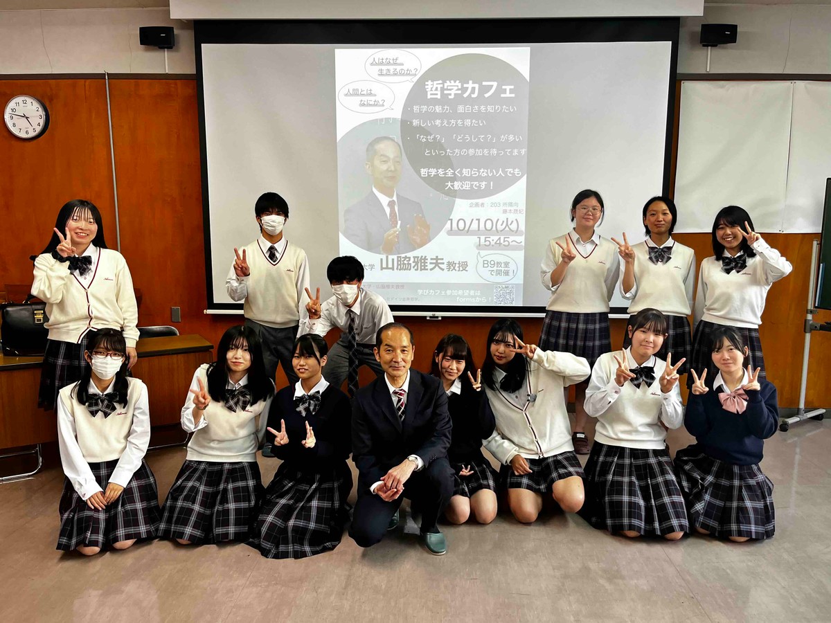 「どんなテーマにするか」「学内での告知」「ポスター作り」「山脇教授との打ち合わせ」まで生徒が行い、「哲学カフェ」と名づけました。
