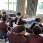 自主活動日2日目、アカデミックコースの1年生と3年生のコラボ企画。1年生が3年生の教室を訪れて、気になる先輩に個別にインタビュー。すでに進路を決めた生徒、受験に向けて今まさにがんばっている生徒、市邨で3年間を過ごした先輩たちに、授業、探究活動、進路について、いろいろ聞いちゃおう!という企画です。