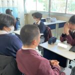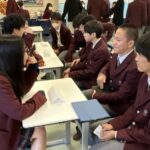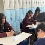 自主活動日2日目、アカデミックコースの1年生と3年生のコラボ企画。1年生が3年生の教室を訪れて、気になる先輩に個別にインタビュー。すでに進路を決めた生徒、受験に向けて今まさにがんばっている生徒、市邨で3年間を過ごした先輩たちに、授業、探究活動、進路について、いろいろ聞いちゃおう!という企画です。
