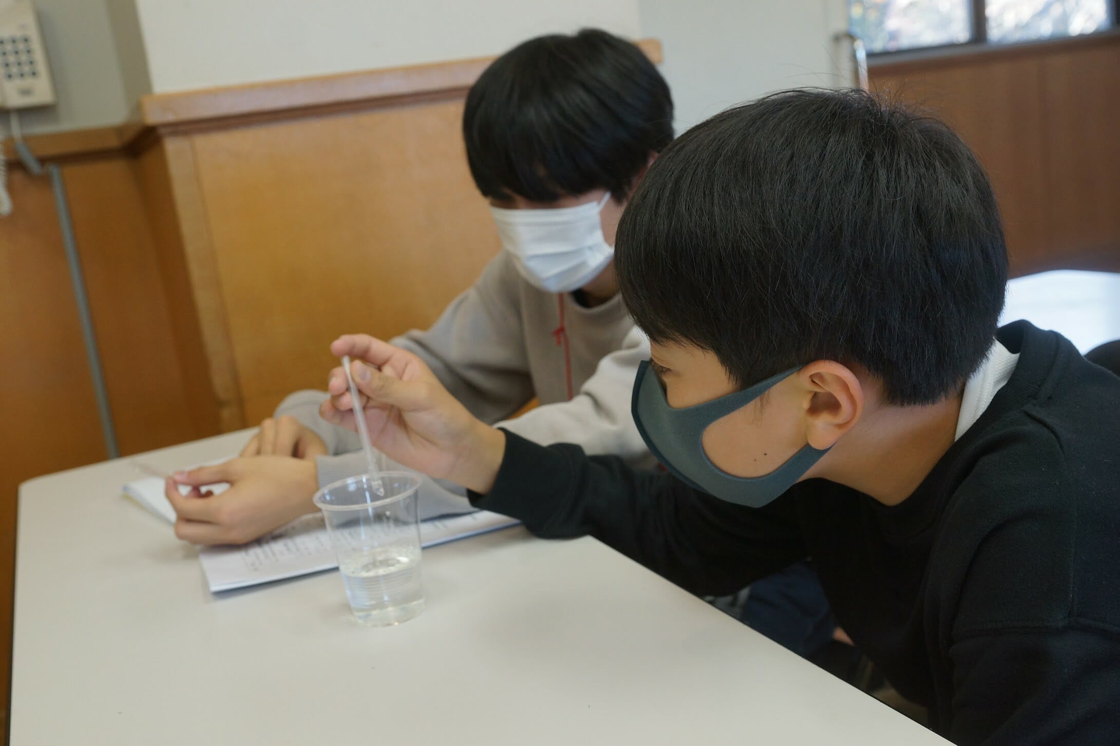 本日のレッスンは英語での理科実験。 洗剤を入れた水の中にシャボン玉を作ると言う活動ですが、なかなか難しい。苦戦しながらも一生懸命取り組むことができました。
