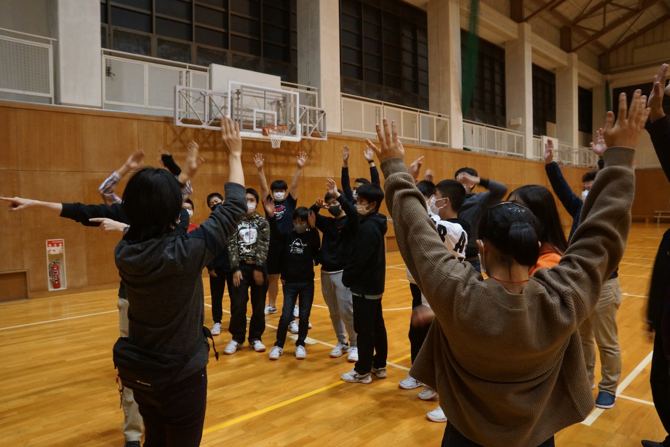夜は体育館でのアクティビティ。もちろん英語で行います。 様々なゲームに取り組み、楽しむことができました。