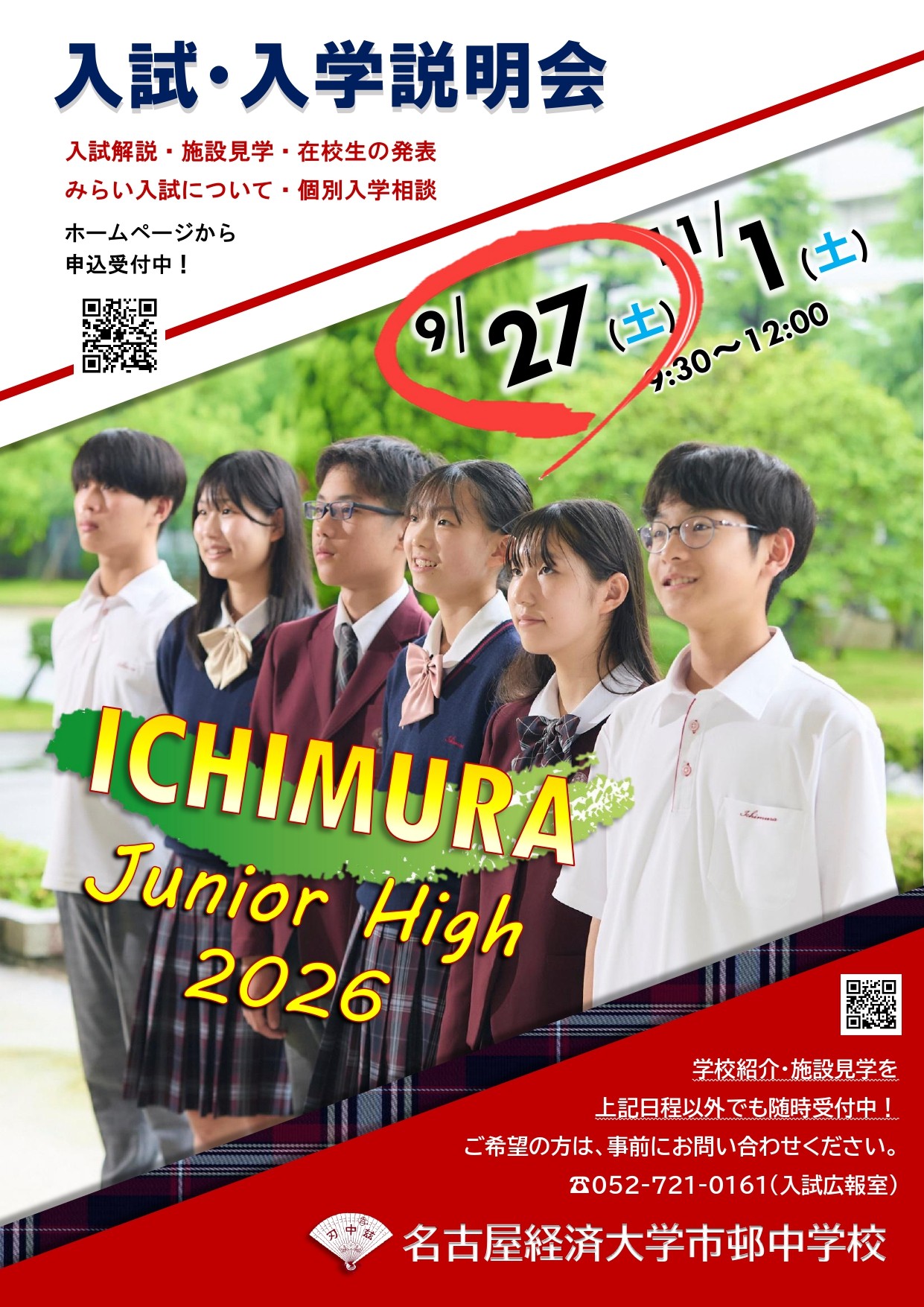 9月27日(土) 市邨中学校 第一回 入試・入学説明会の参加申し込みページです。
