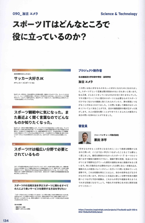 この問いは好きなものをもっと好きになるために生まれたとのこと。なじみのなかったスポーツITを健康や夢の実現、社会とのつながりにまで視野を広げていった探究の過程は本当に価値があるという評価をいただくことができました。