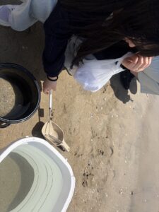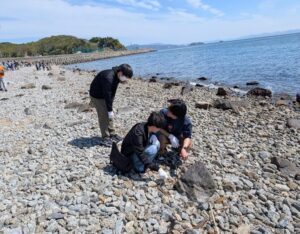 愛知県蒲郡市にある西浦海岸にて清掃活動を行いました。今回の活動では、海岸に落ちているごみの回収だけでなく、特に近年問題となっているマイクロプラスチックの回収に重点を置いて取り組みました。砂浜に混ざった小さなプラスチック片を一つひとつ丁寧に拾い集める作業は想像以上に大変でしたが、海の環境を守るための大切な活動であることを実感しました。