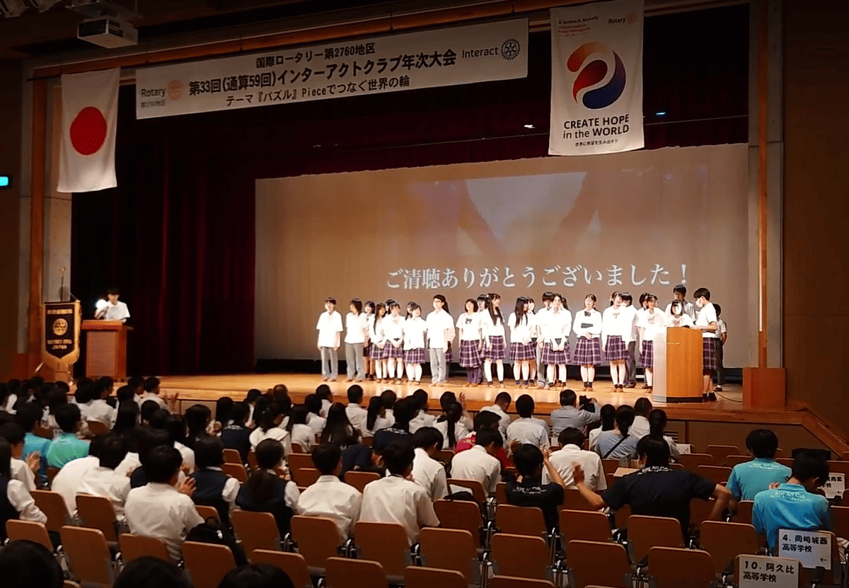 2023年7月17日㈷に豊川高校で行われた第33回インターアクトクラブ年次大会で愛知県内全19校のインターアクトクラブ部員の前で、1年間の活動報告をしてきました。市邨中学・高校のインターアクトクラブは、部員が中学生と高校生合わせて30人以上の人数になり、活発に活動を行っています。