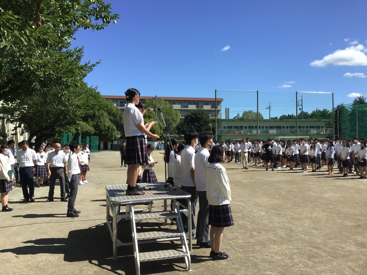 生徒会は先日の役員選挙を経て着任した新役員の紹介と、前会長・安藤さんによる退任のあいさつを行い、新会長・中森さんによる着任のあい さつおよび文化祭に向けての報告がされました。