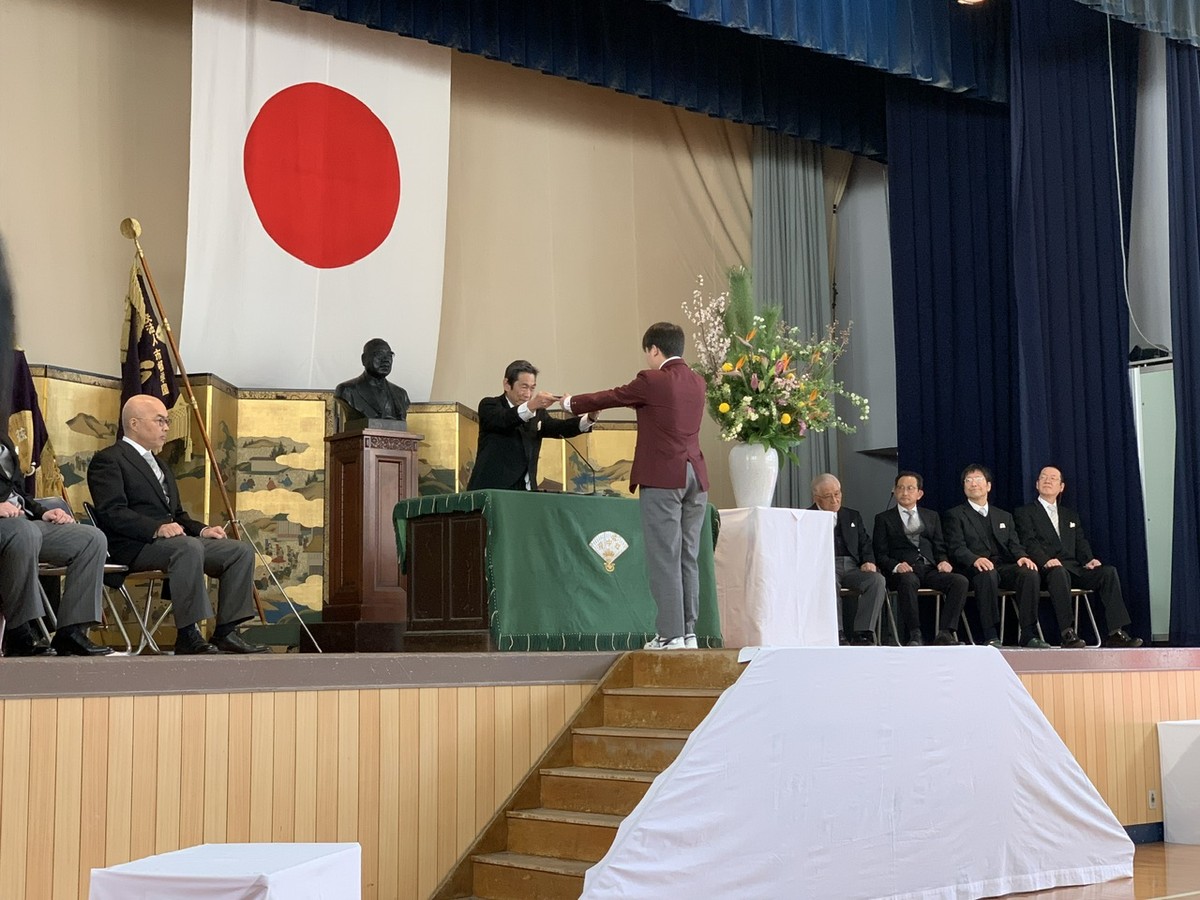 3月15日(金)、中学校では、第77回 中学校卒業証書授与式が講堂にて行われました。厳かな雰囲気のもと、各クラスの代表生徒が壇上で卒業証書を授与され、多くの保護者の皆さま、教職員一同が見守る中での卒業生の門出となりました。