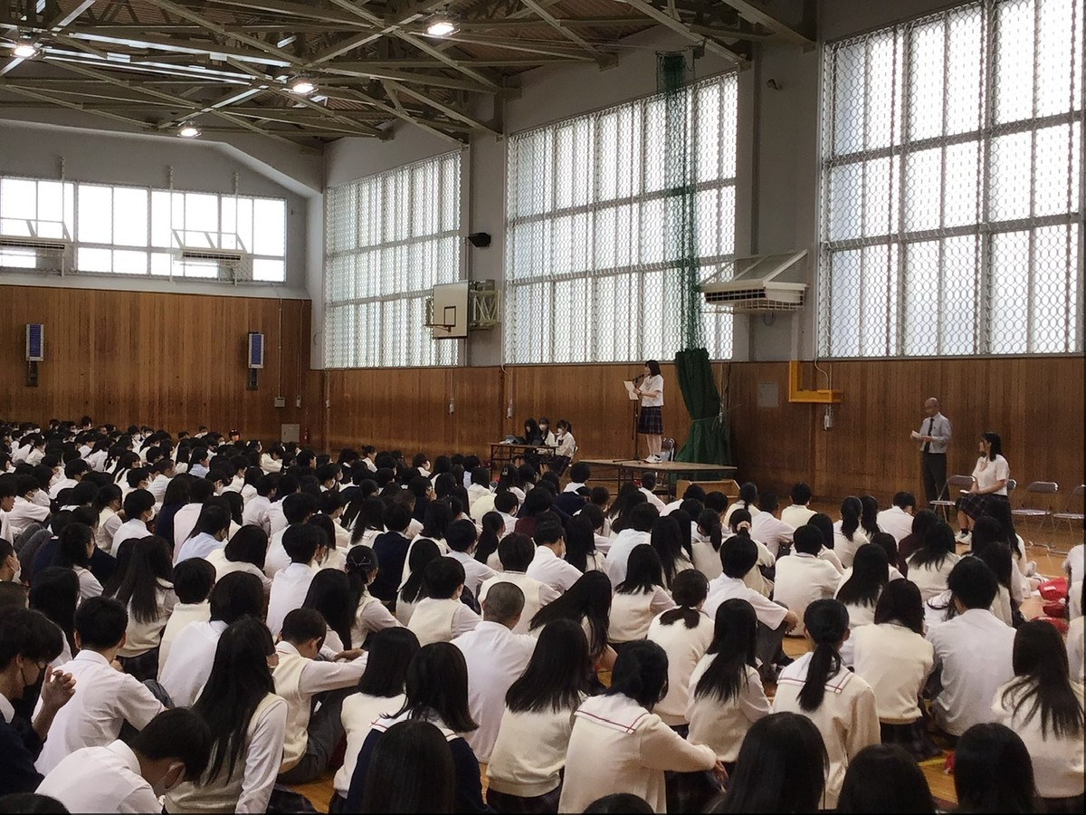 立候補者はそれぞれ、記念体育館と講堂に集まった高校全生徒の前 で演説し、自らの学校をもっとよくしたい思いを自分の言葉で堂々と語りました。