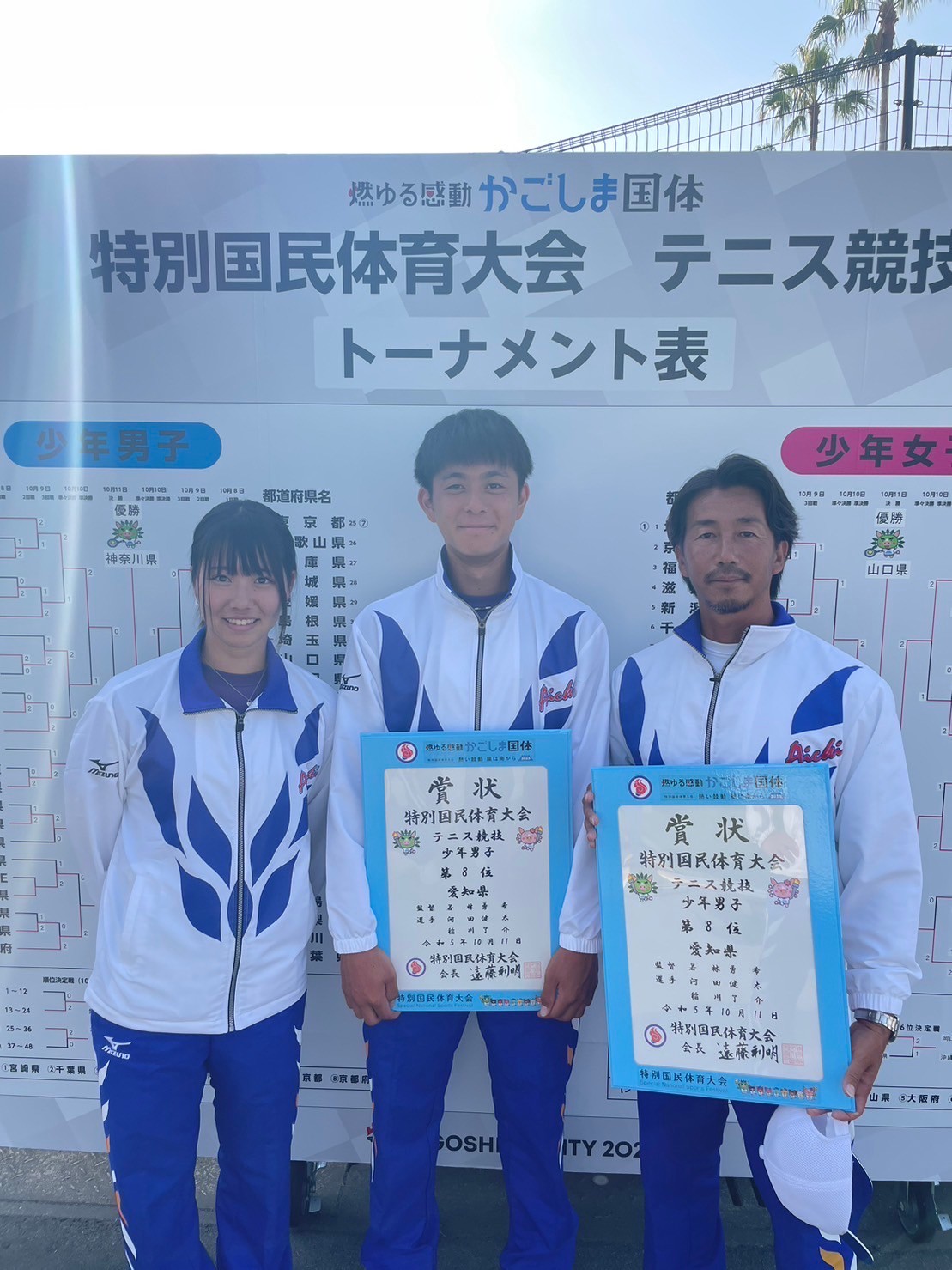 市邨高校・テニス部は、稲川・成田の両選手が県代表として鹿児島県で開催された『燃ゆる感動 かごしま国体』テニス競技に出場しました。結果は、少年男子の部で稲川了介選手(高3)が第5シードの福岡県に勝利し、第8位と健闘しました。また少年女子の部に出場した成田百那選手(高2)は初戦の大分県に勝利しましたが、2回戦で第2シードの兵庫県に惜しくも敗れ、入賞はなりませんでした。