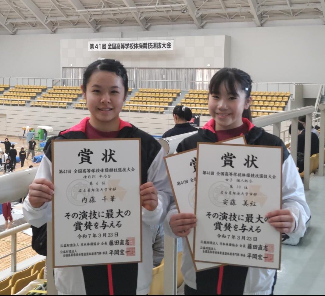 いちむら女子体操部は3月22日(土)、23日(日)に高知県・高知県立青少年センターで開催された【第41回全国高等学校体操競技選抜大会】に出場し、2年生の安藤美紅選手が個人総合10位入賞、段違い平行棒4位入賞、内藤千華選手が平均台6位入賞しました。夏のインターハイに向けて良いスタートを切ることができたと思います。これまで支えてくださった皆さま、ありがとうございました!これからもいちむら女子体操部への応援よろしくお願いいたします!