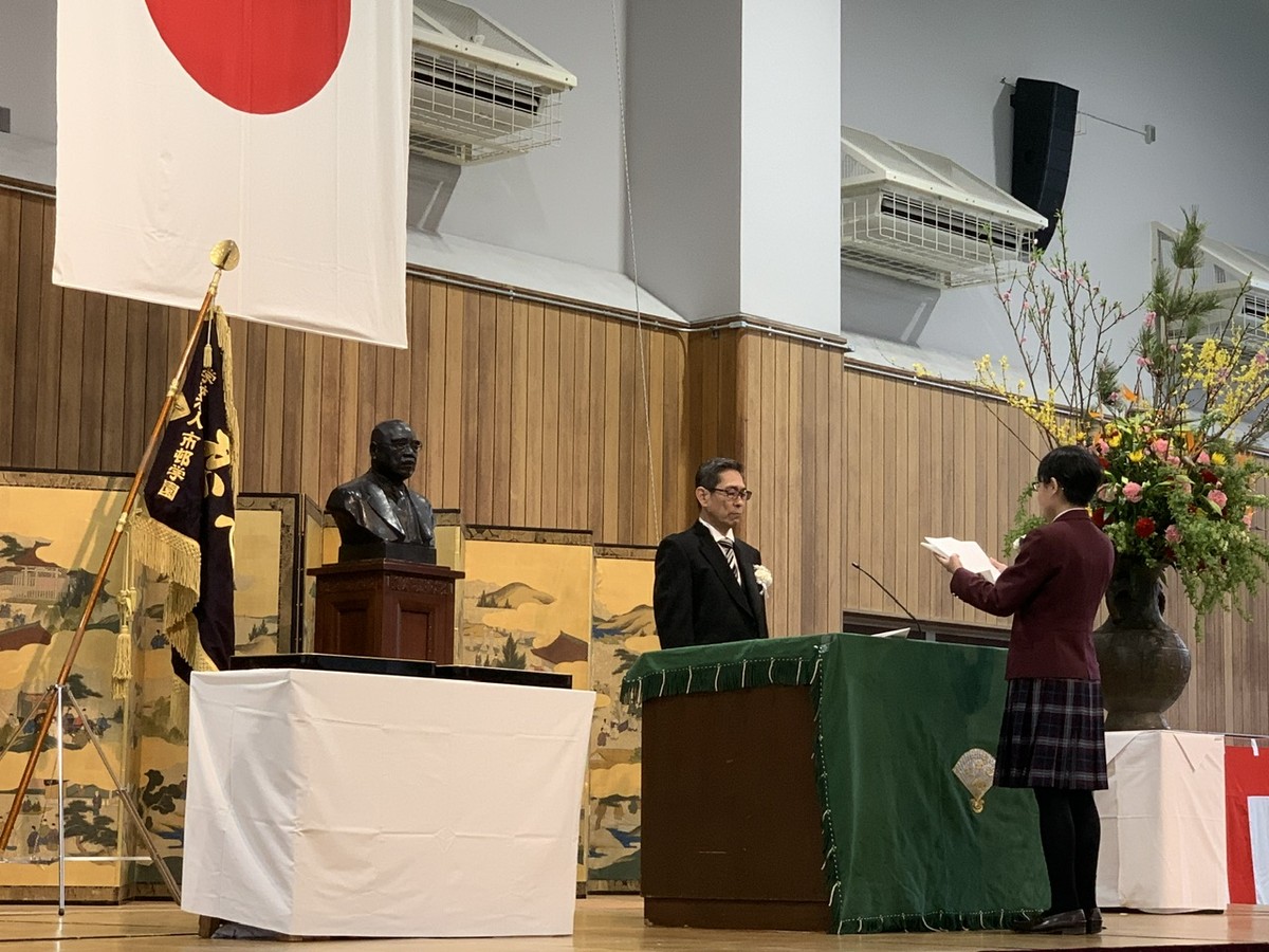 在校生の送辞では、生徒会長・纐纈玲悟くん(高2)が卒業生たちに向けて感謝の気持ちとともに、明るい未来に送り出すメッセージを堂々と伝えました。