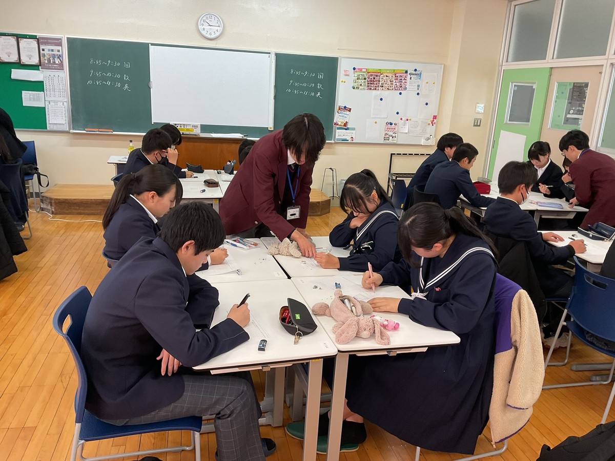 2月22日(土)、高校では特色・推薦入試合格者を対象にした入学前学習会(2回目)が行われました。前回と同様に、国語・数学・英語の3教科の授業を行い、理科・社会については課題の提出と返却が行われました。「授業」とは言っても、ペアワークやグループワークを中心に、周囲とコミュニケーションを取りながら展開する”市邨らしい”スタイルでした。
