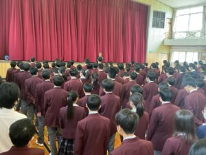 報告をしてくれた皆さん、ありがとうございました。もちろん、報告してくれた生徒のほかにも、地道な努力を継続して着実に力を伸ばし、実績に繋げている生徒が中高ともにたくさんいます。今日で二学期が終わり明日から冬休みが始まりますが、おのおのがこの一年間のあらゆる活動をふり返って、新たな学びへとつなげていってほしいと思います。