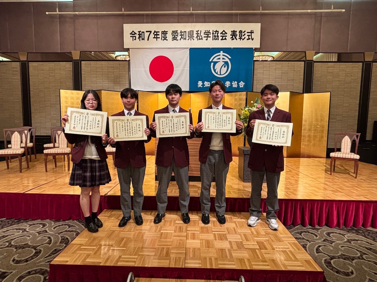 11月4日(火)、ホテル名古屋ガーデンパレスにて令和7年度 愛知県私学協会 表彰式が行われました。この表彰式は、県内の私立学校を対象に、各校において顕著な活躍をした優秀生徒の表彰を行うものです。
