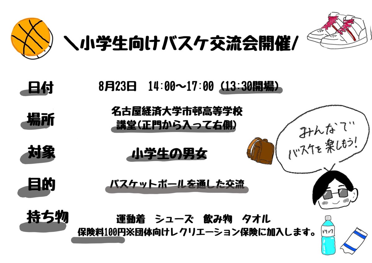 本校部員とバスケを楽しみたい小学生のみなさん、ご参加お待ちしています!