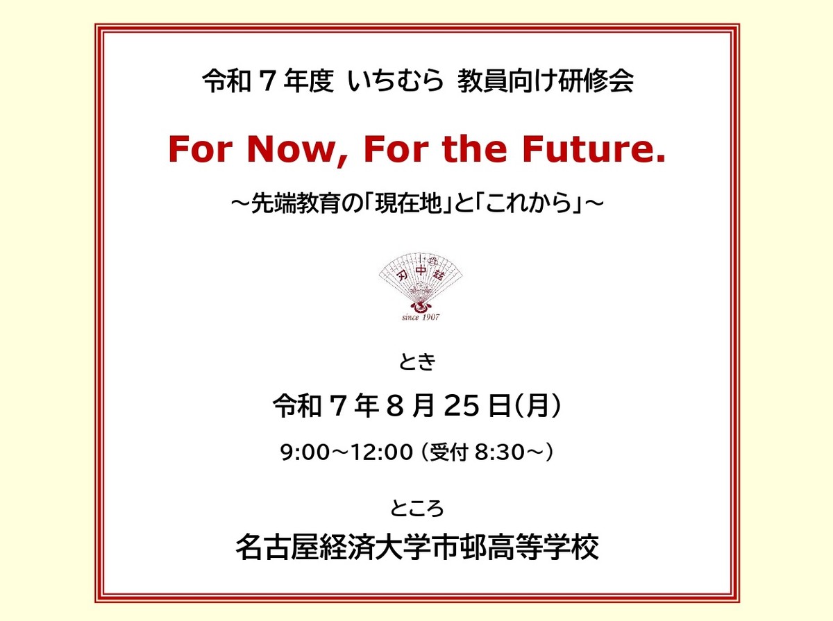 市邨中高では、8月25日(月)に「令和7年度 いちむら 教員向け研修会」と題して、学校の教育現場で活躍されている先生方を対象に研修会を行います。