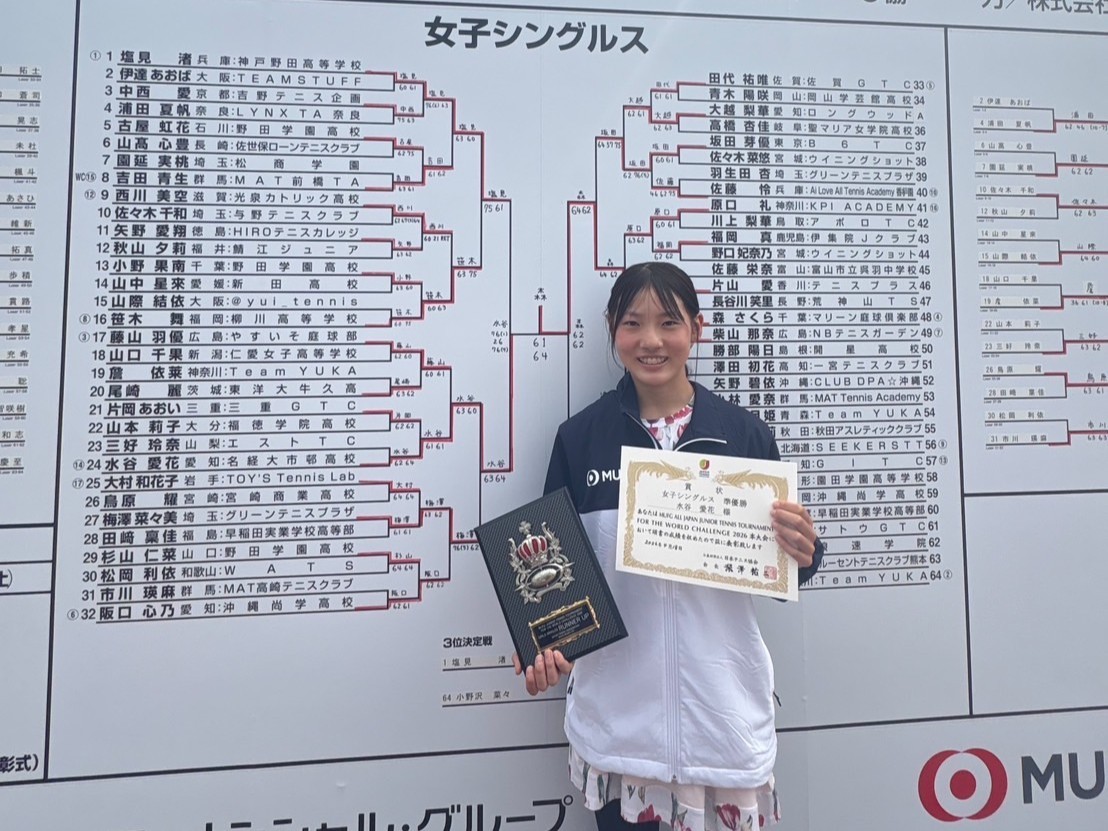 4月14日(火)~19日(土)まで岐阜県・長良川テニスプラザにて開催された、MUFG全国ジュニアテニストーナメント2026において、本校・女子テニス部の水谷愛花選手(高1)が準優勝を果たしました!