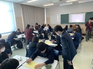 2月21日(土)、高校では二回目の推薦・特色入試合格者対象の入学前学習会が行われました。