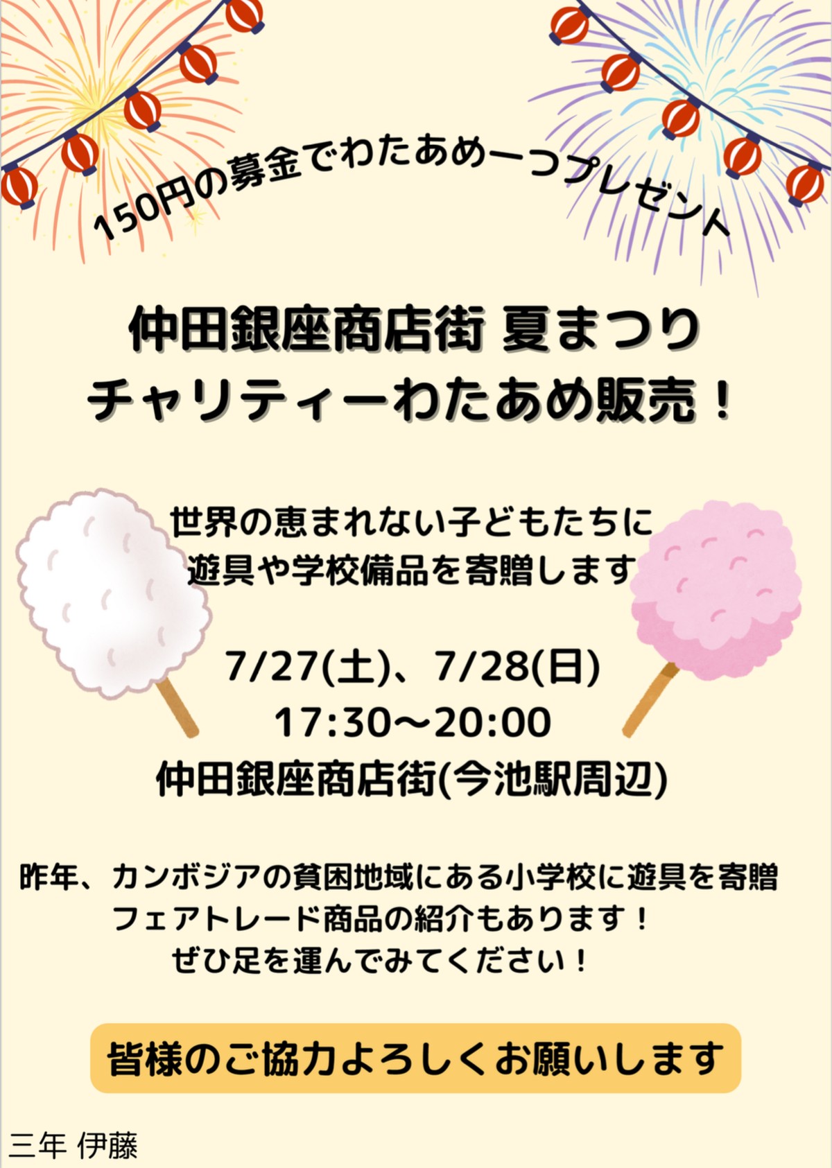 【ユネスコ平和活動】夏祭り国際支援参加! 〜仲田銀座商店街7月27日土曜、日曜〜