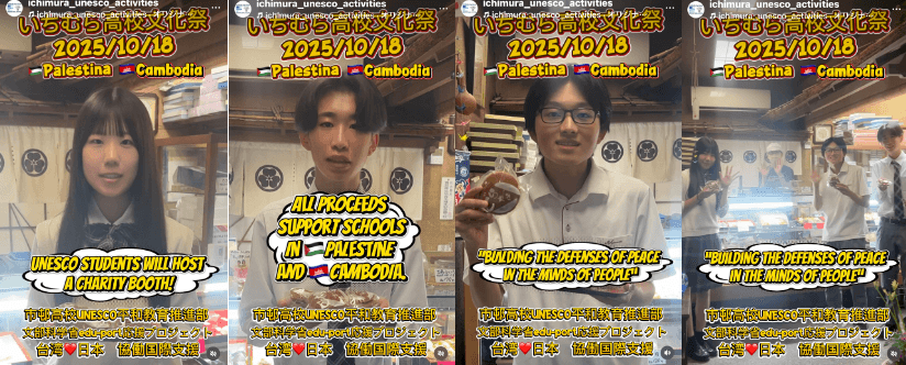 いちむら高校の戦後80年の文化祭では、パレスチナ学校支援、カンボジア学校支援のためのチャリティー模擬店を実施します。