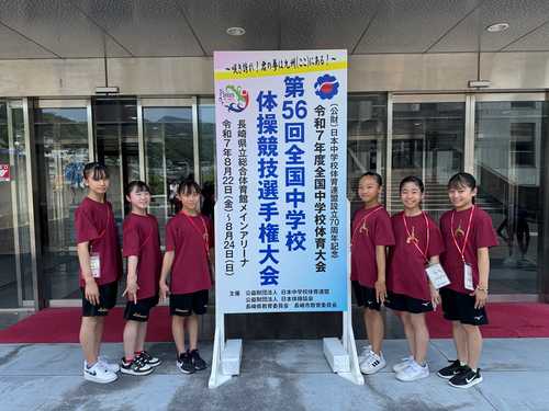 中学・女子体操部は、8月22日(金)から24日(日)まで長崎県長崎市の県立総合体育館(かぶとがにメインアリーナ)で開催された第56回全国中学校体操競技選手権大会に出場し、団体総合3位、中3・中島選手が個人総合8位入賞を果 … "体操部 全中団体3位・個人8位入賞!" の続きを読む