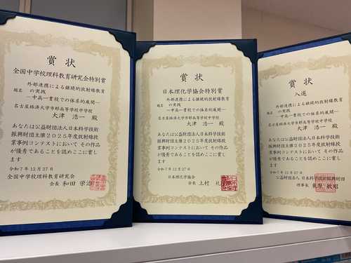 本校理科教諭・大津 浩一(おおつ こういち)先生の授業実践が、公益財団法人日本科学技術振興財団主催の【2025年度 放射線授業事例コンテスト】において、以下の各賞を受賞しました! ・2025年度 放射線授業事例コンテスト … "理科 放射線授業事例コンテストで受賞" の続きを読む