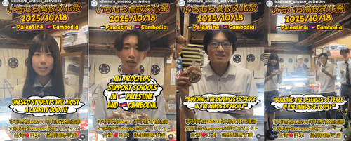 いちむら高校の戦後80年の文化祭では、パレスチナ学校支援、カンボジア学校支援のためのチャリティー模擬店を実施します。 販売するどらやきは、学校の最寄駅である今池で90年以上の歴史のある、老舗和菓子店「しらいし 」さんの、ど … "【ユネスコ】文化祭 パレスチナ・カンボジア学校支援チャリティどらやき" の続きを読む
