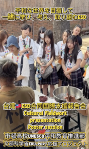 本校では今後も、文部科学省EDU-Portニッポン応援プロジェクトのもと、ユネスコ憲章の理念をふまえながら、対話と交流を通して世界の課題、地域の歴史、文化的背景を結び付けて学ぶ教育実践を積み重ねてまいります。