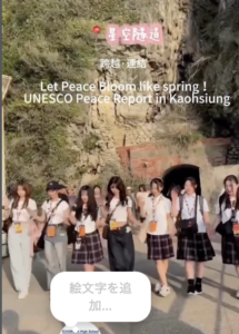 The Japanese and Taiwanese students, who had been learning together online and working side by side on support for Palestinian children’s schools, Cambodian children’s schools, and fair-trade support for refugee women, continued to deepen their face-to-face exchange in the afternoon. For students who have not only studied global issues and given presentations together, but have also connected their learning to concrete action, sharing the same time and space and engaging in direct dialogue became another meaningful opportunity for learning unique to this project.