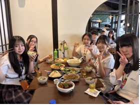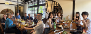 The afternoon began with a lunch exchange at a restaurant in Huangpu New Village, a renovated historic building, where Japanese and Taiwanese students were divided into small groups. Over Taiwanese dishes in a calm and welcoming setting, students who had learned together online and collaborated in support activities were able to sit down face to face and talk at length.