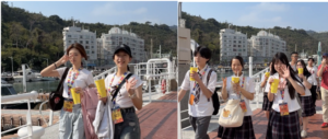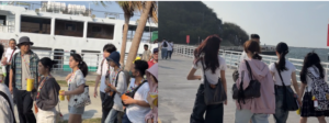 昼食交流の後、生徒たちは船で旗津(Cijin / Qijin)へ移動し、島で のフィールドワークを行いました。