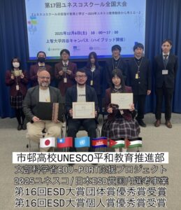 本校は、今後も越谷北高校をはじめとするユネスコスクールの仲間と連携しながら、ESDを軸とした教育活動を継続・発展させて まいります。引き続き、地域や世界とつながり、「心の中に平和の砦を築く」学びを実践していきます。