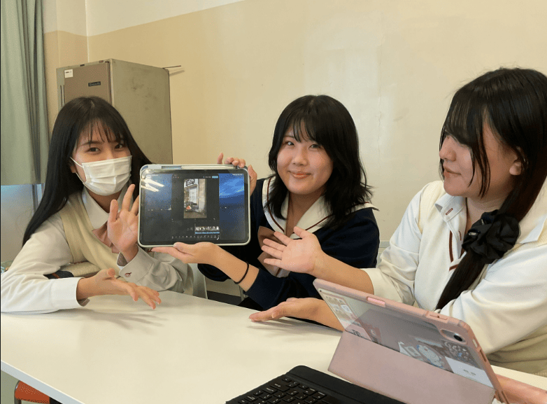 このゼミでは、自分たちで紹介したい商品やお店、施設などを選び、iPadやスマートフォンを使ってショートムービーを作ります。