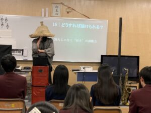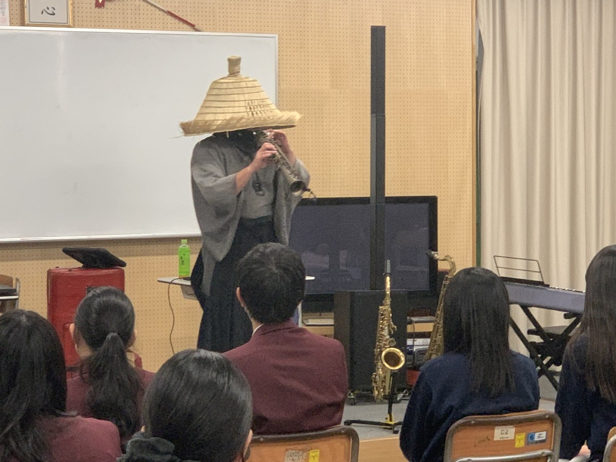 「音楽ゼミ」では、名古屋観光特使に任命され、SNS総フォロワー数27万人のサックスプレイヤー・サックス侍さんにお越しいただき、講話とともに迫力のライブ演奏をしていただきました!体にしみわたっていくような美しい音色の響きに、ゼミ生も先生たちも圧倒されました。サックス侍さんはこのあと、放課後の学び【未来の 語り場】として講堂でもライブパフォーマンスを披露してくれました。