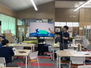 「理科ゼミ」では図書館にて、昭和女子大学の白數 哲久(しらす てつひさ)先生をお迎えし、ご自身が監修されたNHK番組の映像を使って、ゼミ生と一緒に光の性質についての実験ワークショップを行いました。白數先生は何といっても、あの鬼滅の刃の公式学習本【キメツ学園!全集中ドリル】の監修をされています。白數先生にはこのあと引き続き、放課後の学び【未来の語り場】も実施していただきました。